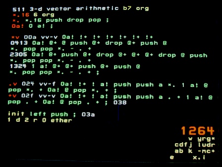 Space is left at address 0 to store two 3-vectors. This seems optimal for their cross-product.