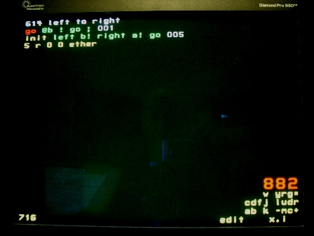This code from block 882 is loaded into node 614. It is typical of code for wire nodes; nodes that merely pass data from one port to another. Such nodes typically have a low duty cycle and use little power. But they're essential to connect nodes that have constrained positions, such as a/d nodes.