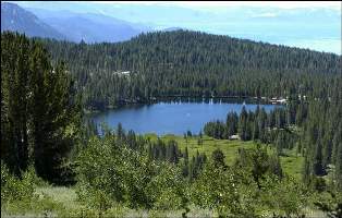 This morning I drove to Packer Saddle (easy), thence along the skyline to Deer Lake (hard). The latter is a real Jeep road: 4-wheel drive in 1st gear. Then I walked for 3 hours along the Pacific Crest Trail, adding a section I hadn't done before. Coming back (10:00!) I met 4 backpackers and 3 bicyclists. Cool and windy with great views of the lakes.