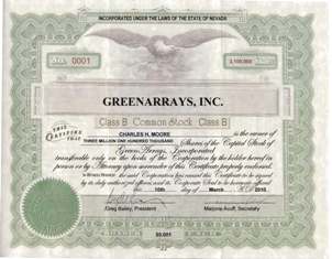 GreenArrays has recently issued founders' stock to our people. All part of our reorganization and posturing to raise funds.