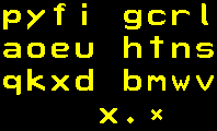 Comfortable to use for it minimizes finger motion. Here is one of the keypads displayed at lower right of the screen. The keys corresponding to these characters are: